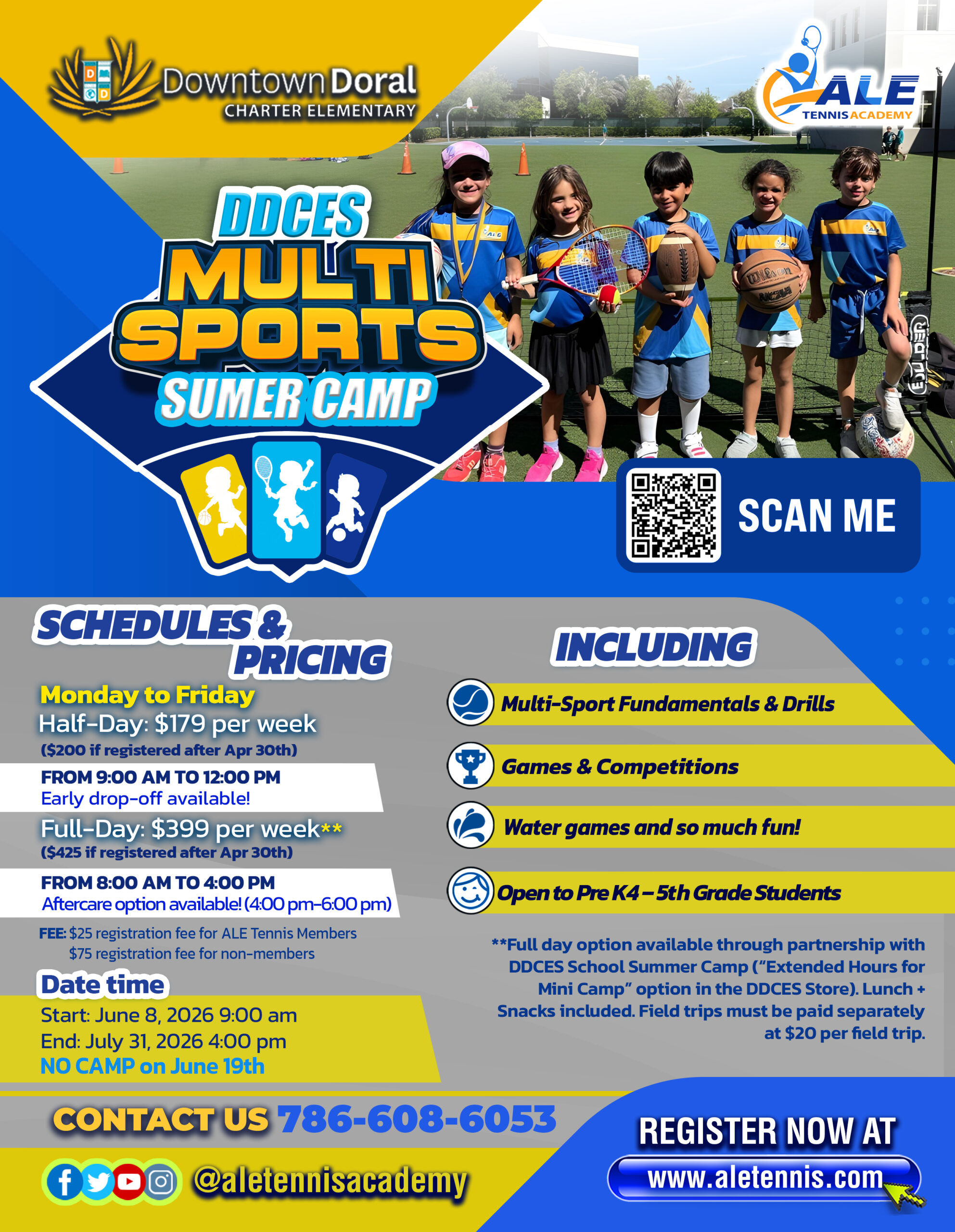 **Full day option available through partnership with DDCES School Summer Camp (“Extended Hours for Mini Camp” option in the DDCES Store). Lunch + Snacks included. Field trips must be paid separately at $20 per field trip.